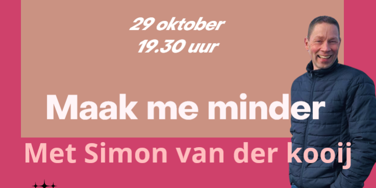 We starten om 19:30 uur en nemen samen de tijd om stil te staan bij het studie: “Maak me minder”. Spreker van de avond is Simon van der Kooij, die ons zal meenemen in een inspirerende en praktische boodschap.