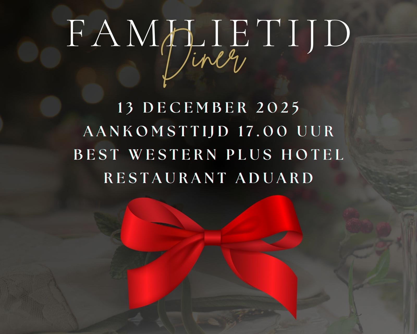 Lees verder!Op 13 december nodigen we je van harte uit voor het jaarlijkse Familietijd Diner in het Best Western Plus Hotel Restaurant Aduard